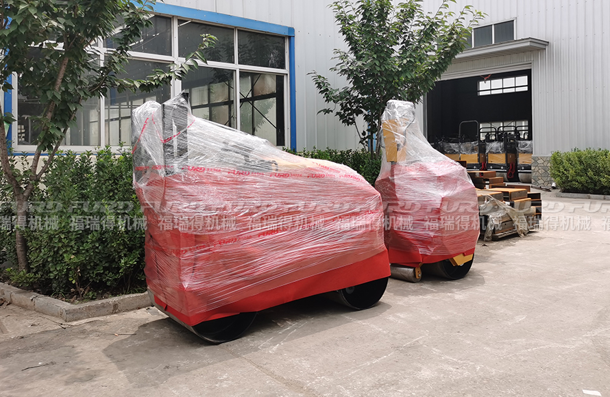福瑞得機械2臺小型壓路機打包發(fā)往商丘