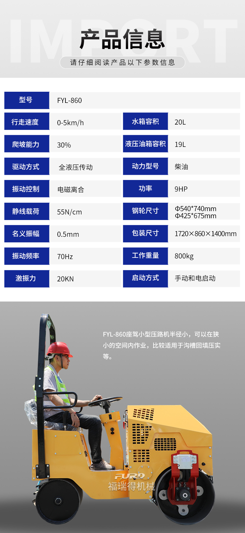 主要用于溝渠基礎,道路,體育場地的壓實整平,也可用于壓實瀝青表面的作業(yè)。