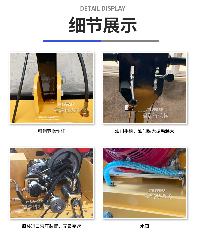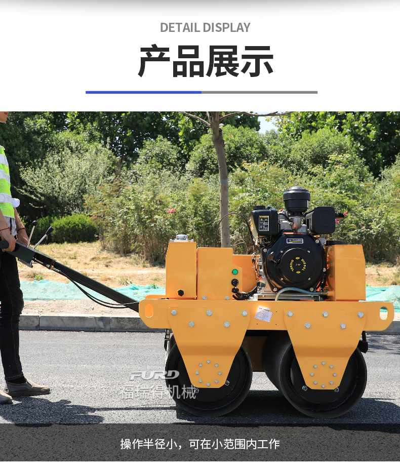 主要用于溝渠基礎(chǔ),道路,體育場地的壓實整平,也可用于壓實瀝青表面的作業(yè)。