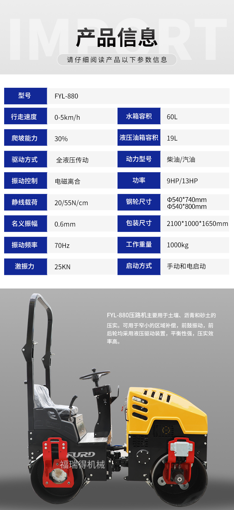 FYL-880 1T液壓振動(dòng)壓路機(jī)