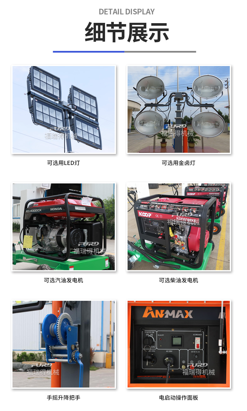 用于體育場(chǎng)館、機(jī)場(chǎng)、碼頭等大型公共場(chǎng)所,公路、鐵路、電力等緊急搶險(xiǎn)現(xiàn)場(chǎng),露天采礦現(xiàn)場(chǎng),以及防洪防汛、搶險(xiǎn)救災(zāi)現(xiàn)場(chǎng)等其他需要緊急備用光源、電源的場(chǎng)合。