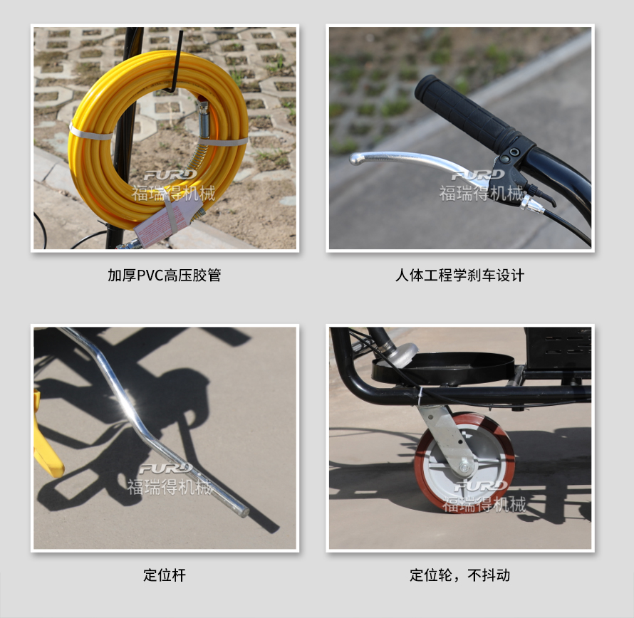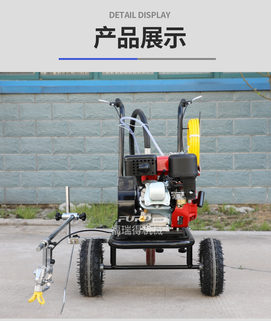 小型手推式道路劃線機是一種在道路、停車場、廣場和跑道等平整地面上劃出不同約束、指引和警示等規(guī)則限制標志的路面施工機械。最常見的就是在馬路上劃斑馬線,在路上劃車庫線、停車線等等應用于小型工程、短途施工,活動方便,靈活操作。
