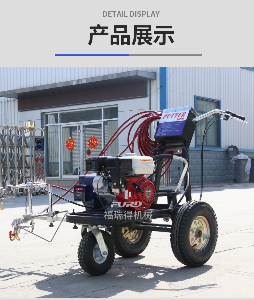 小型手推式道路劃線機(jī)是一種在道路、停車場、廣場和跑道等平整地面上劃出不同約束、指引和警示等規(guī)則限制標(biāo)志的路面施工機(jī)械。最常見的就是在馬路上劃斑馬線,在路上劃車庫線、停車線等等應(yīng)用于小型工程、短途施工,活動(dòng)方便,靈活操作。