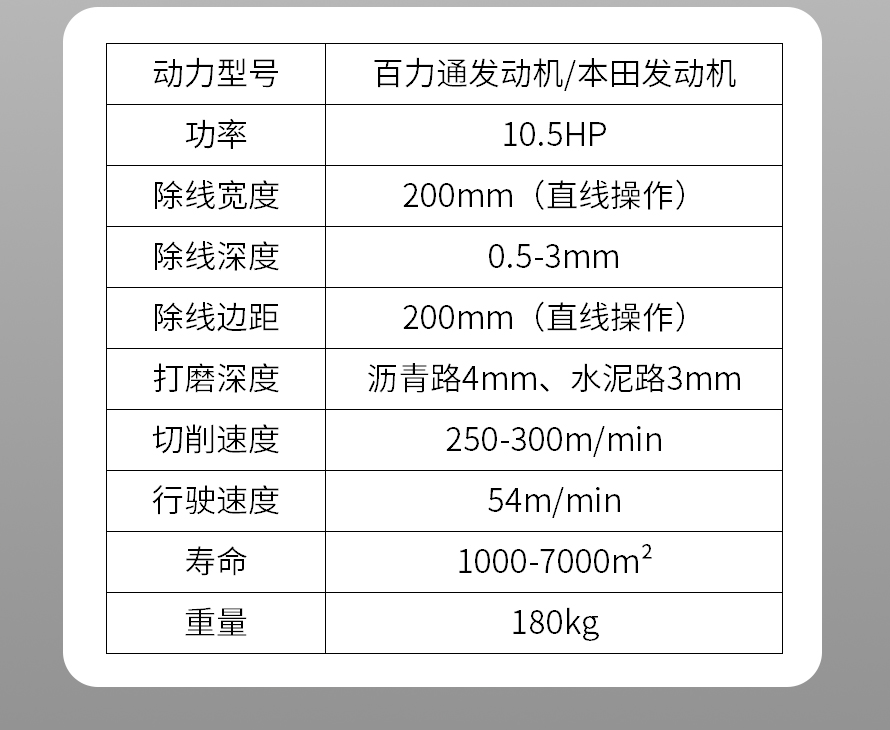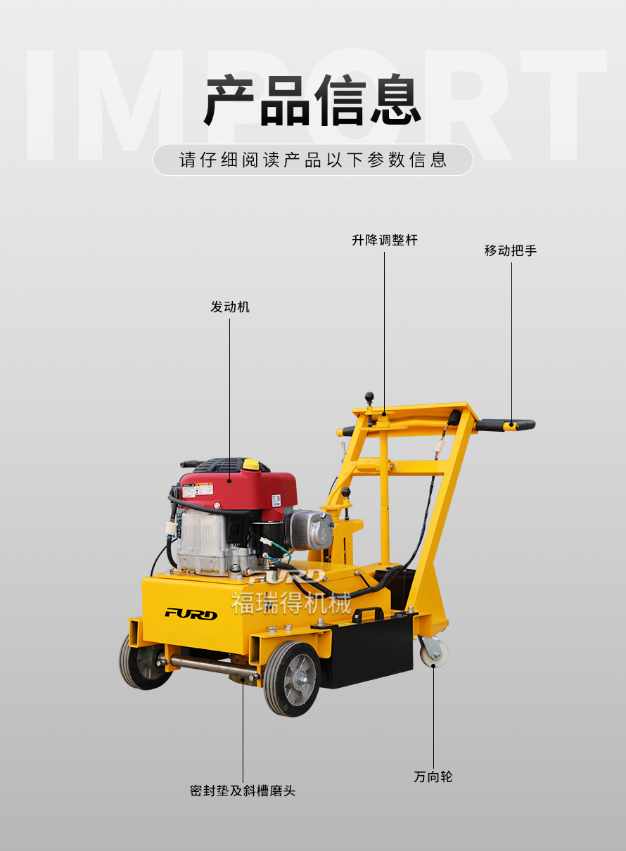 特點(diǎn):體積小、重量輕、機(jī)動靈活、工作效率高、操作簡單。 適應(yīng)范圍:主要用于瀝青道路、混凝土道路、物業(yè)小區(qū)、機(jī)場、停車場等地的標(biāo)線清除。