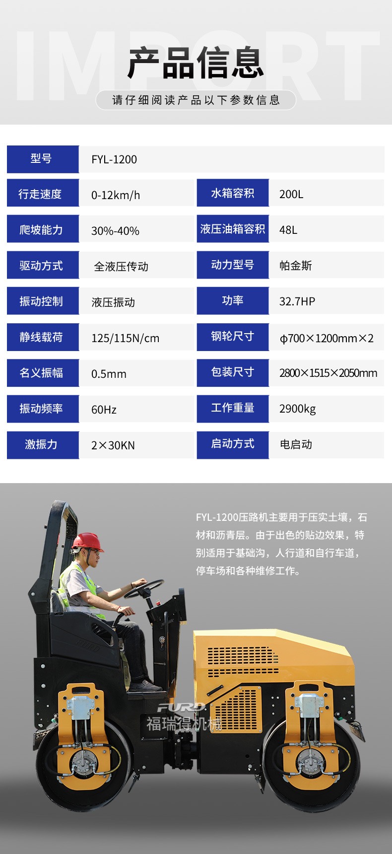 FYL-1200 3噸全液壓座駕振動(dòng)壓路機(jī)