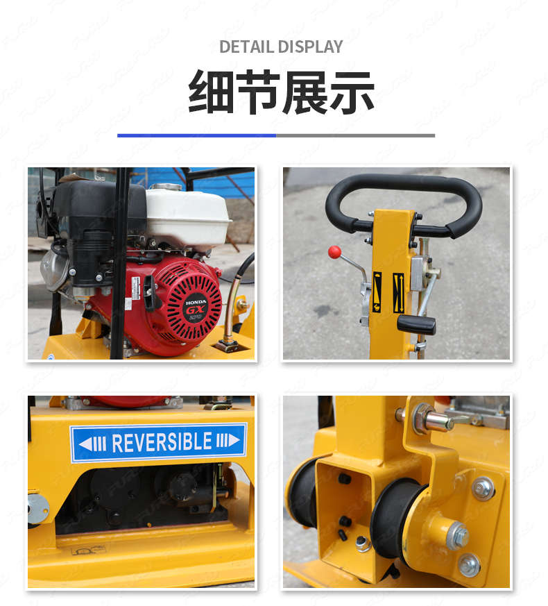 適用于路基邊緣、橋涵、管道、溝槽底部等狹長地帶的壓實。 本田汽油動力,名牌品質保證。
