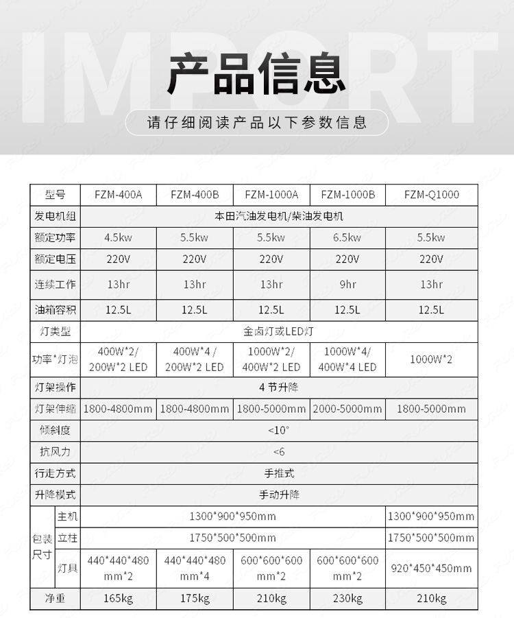 FZM-1000B 5米可升降移動(dòng)工程照明燈車(chē)