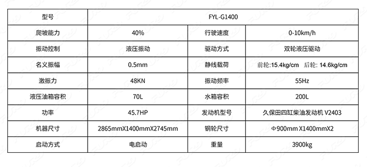 FYL-G1400 4噸全液壓雙鋼輪凸輪壓路機